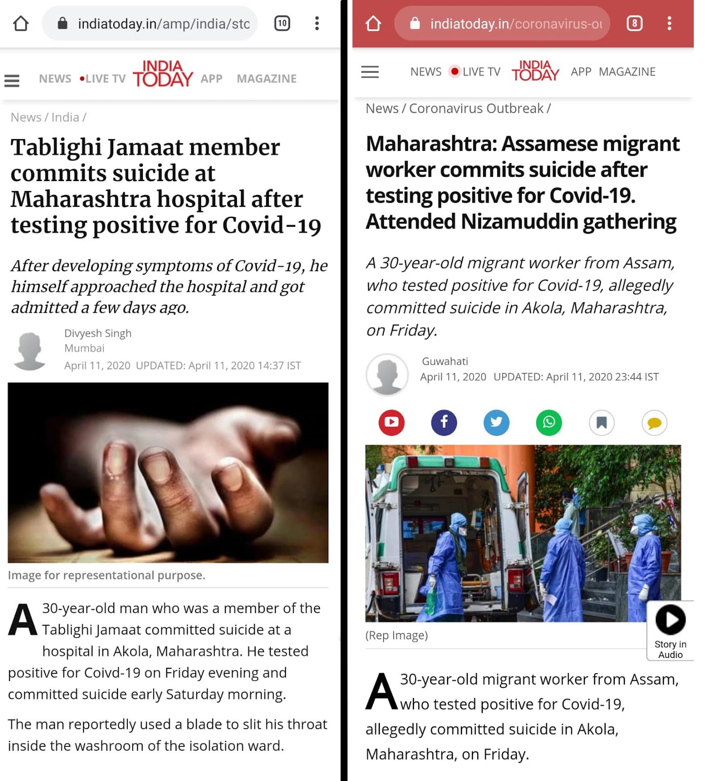 India Today in an attempt to spread Islamophobia writes 2 reports on same incident calls Migrant worker as Tablighi Jamat Member